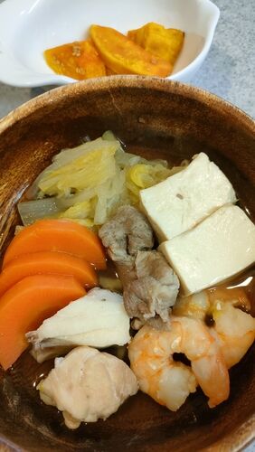 こんにちは、マチミィです(*´-`)ノシ 1/20のひーくん&あーちゃんのご飯です♪朝ごはん tontonのミルクパン& デニッシュパン 海老と豚肉の中華煮 煮かぼちゃ トマトスープ りんご 相棒は♪ #藤次郎 『エマンスールナイフ』【無添加スープ】souppaletteやさしいト…