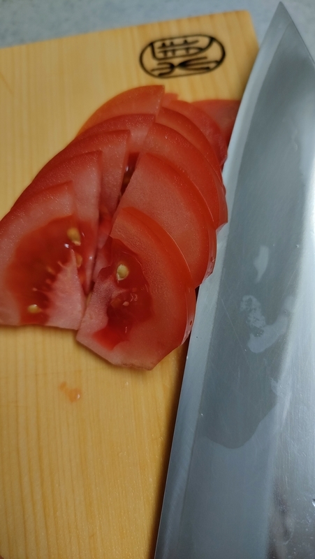 ずいぶん研げていませんが、まだまだトマト程度ならスパスパ切れていますね❦